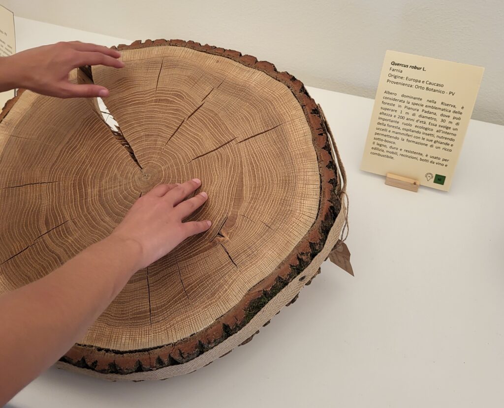 Il percorso proposto ai visitatori illustra le caratteristiche della Riserva Naturale Integrale Statale Bosco Siro Negri e ne raccontata la storia. Completano la mostra campioni provenienti da tutto il mondo, che raccontano storie di legni vicini e lontani, proibiti e minacciati, strani o pregiati. I campioni esposti parlano di anelli di accrescimento ed età degli alberi, funzioni di alberi e foreste e benefici per l’uomo, struttura e utilizzo del legno, contenimento di specie aliene e tutela di specie autoctone, cambiamenti climatici e deperimento forestale.